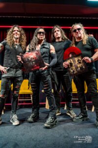 Otra de las cuestiones que más nos llamaron la atención a todos, y que fue resuelta a pregunta de nuestra compañera de Metaltrip, tenía que ver con la portada. Nos perjuraron que las similitudes con la de Senjutsu (Iron Maiden) son casuales. No obstante, adelantaron que la temática samurái dará mucho juego en la espectacular escenografía que tienen preparada para la próxima gira. Una gira en la que también prometieron recuperar canciones que no venían siendo ya tan habituales en sus setlists, como «Hasta el día más oscuro».