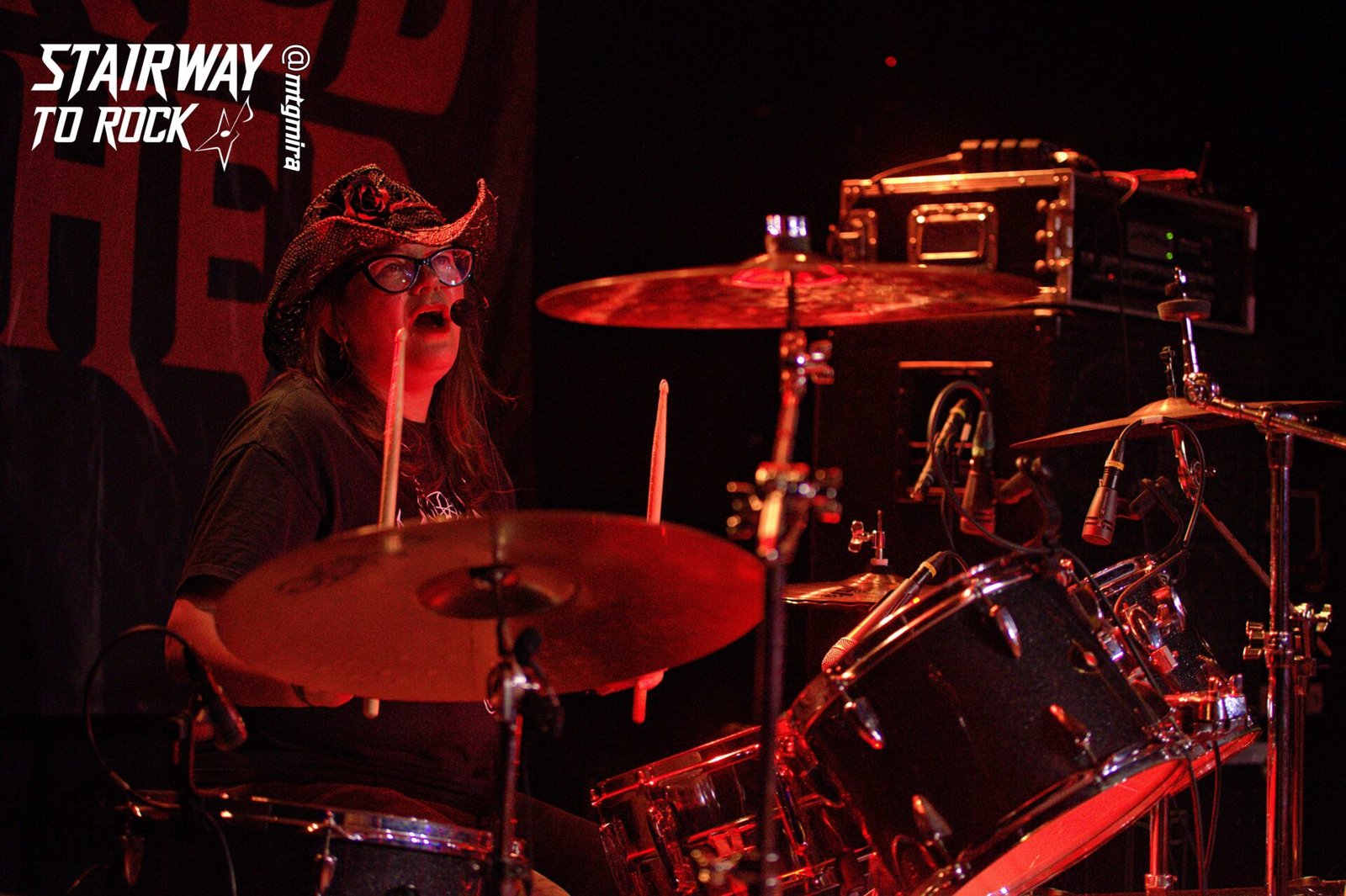 Para arrancar el suculento festín metalero de esta noche de jueves contaríamos con la presencia de los americanos Hellgrimm. Con todavía poco público en el local arrancaba la descarga de este trío de San Antonio, Texas, que desplegó un sonido muy particular en el que se aunaron influencias del rock garagero, el punk y el stoner. A primera vista, lo que más llamó la atención fue que su batería, Erica Missey, se encargó también de las labores vocales, dándole un toque especial a temas como “Jack Of All Blade” y “Sin After Sin”.