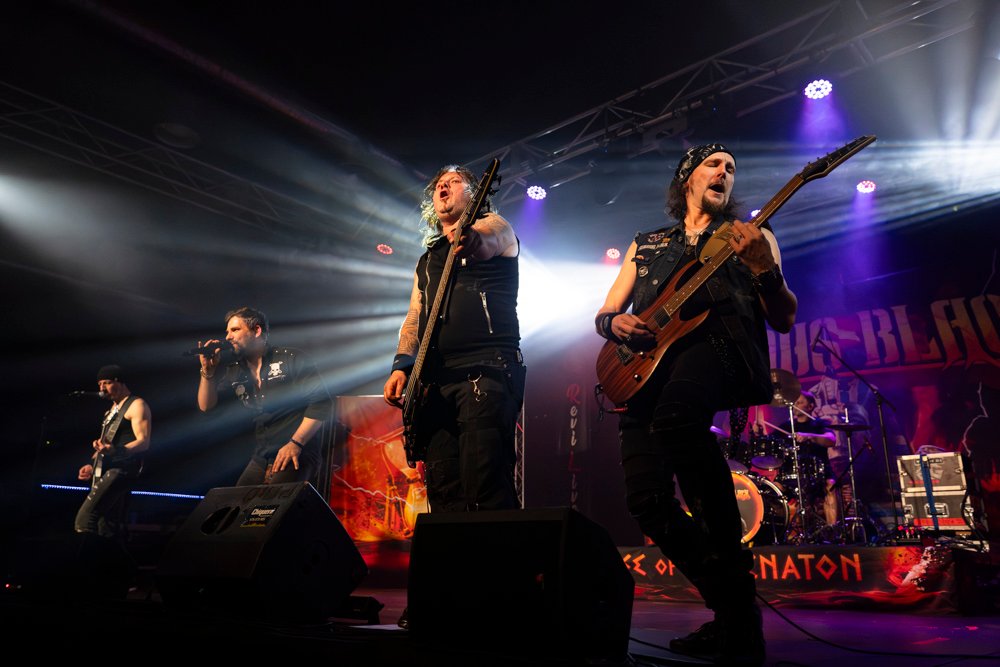 Con un riff de inicio más contundente y subiendo el ritmo, enlazaron con “Gods of War”, notándose ya en este tema que el público empezaba a entrar en la actuación. Antes de seguir con “Lords of the Hunt”, petición de aplauso para sus compañeros de gira (lo que decíamos antes…la sensación es que tuvieron un ambiente de muy buen rollo y camaradería entre las tres bandas).