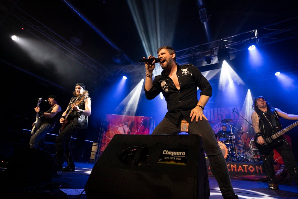 A las 21:45 (puntualidad milimétrica) y tras la breve intro “Temple of the Sun” de su primer esfuerzo discográfico, seguida de “Akenathon”, Serious Black capturó la atención del público con su presencia en el escenario y un sonido potente. Nikola estuvo en plena forma, entregando una actuación vocal sin fisuras, sabiendo conectar con la audiencia con total soltura. Los asistentes respondieron con entusiasmo, coreando cada canción y levantando los puños cada vez que Nikola lo pedía (y aquí debo decir que quizás abusó un poco de ese recurso “fácil”).