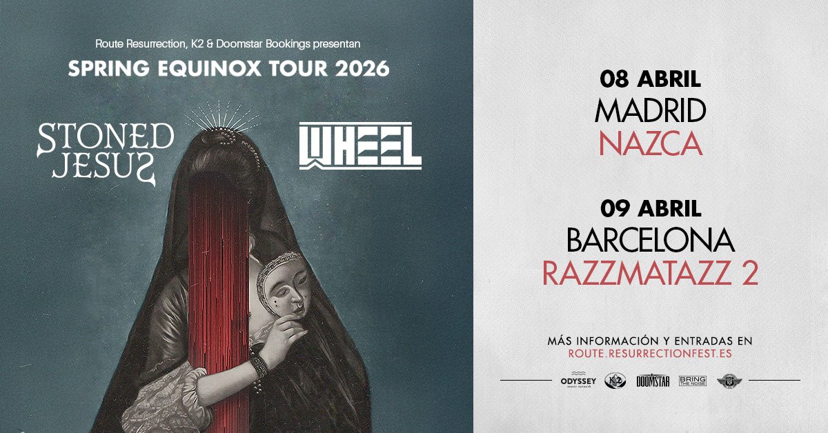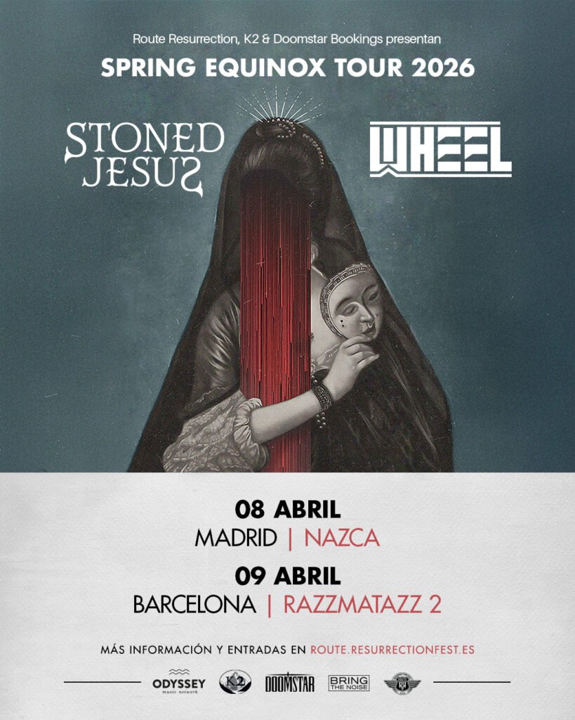 Pero no estarán solos en esta travesía. Wheel, una de las bandas finlandesas más interesantes del panorama progresivo contemporáneo, se suman a ambas citas tras un año de forma espectacular. Vienen de girar con Amorphis y de conquistar América con su The Dark Side Tour, así que llegarán a España con la maquinaria bien engrasada y el acelerador pegado al suelo. Su mezcla de precisión técnica y emotividad promete un contraste explosivo junto al enfoque más denso y magnético de Stoned Jesus.