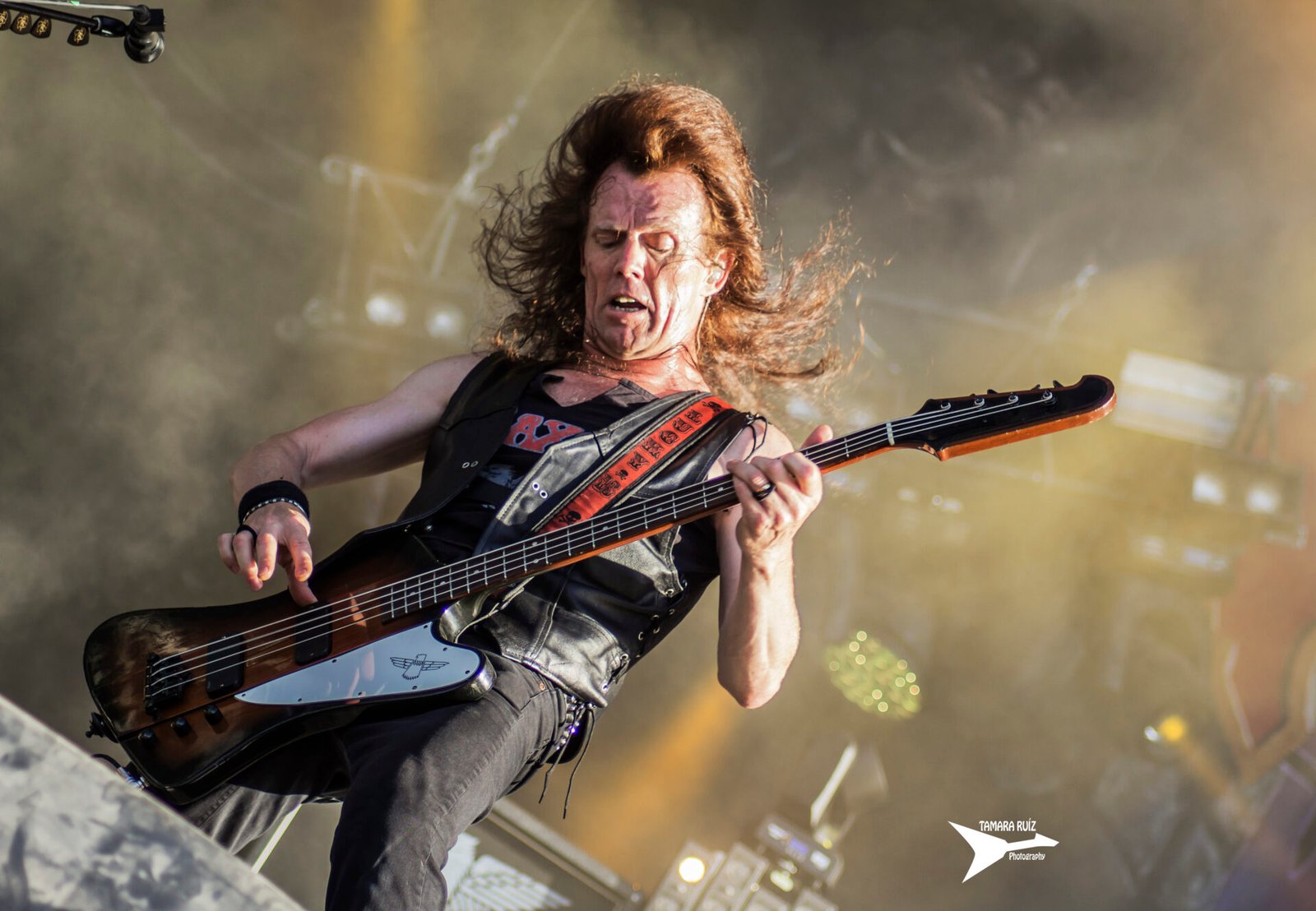 También de este Hellfest, ya del último día los grandes Saxon tocaron a plena luz del día, algo normal en el festival al haber tantas bandas, pero que no lo es tanto si estás acostumbrado a ver a este grupo en un concierto propio. La foto no es de Biff, pero la melena al viento de Nibs Carter también es llamativa.