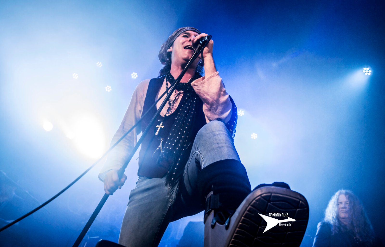 Hace unos años, The Quireboys eran asiduos a pasar cada pocos meses por nuestro país. Fueron varias las veces que cubrí el evento tanto fotográficamente como redactando su crónica. En esta ocasión, en la ya desaparecida sala Caracol, su líder, Spike, salió al escenario con una bota ortopédica. Lejos de estar más parado sobre las tablas, no paró de moverse incluso de subirse a los altavoces, de donde salió esta instantánea.