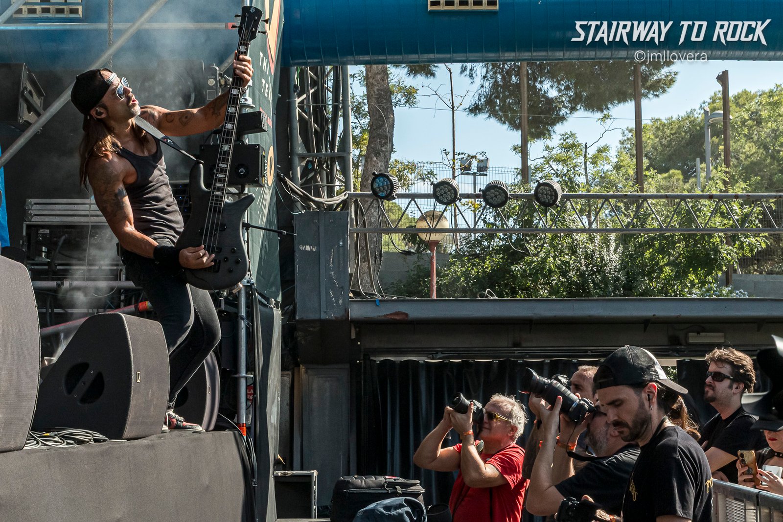 Rock the Sun ofreció para abrir, en su primera entrega, a una banda local y muy querida en Barcelona: Big Mouthers. Pasaron de las versiones a dar el salto y ofrecer un disco propio. Lo que en principio podía sonar a arranque tímido, pronto se convirtió en una descarga enérgica: la formación dejó atrás su look inspirado en el glam angelino de los 80 para presentarse enfundados en riguroso negro, desafiando al sol inclemente que caía sobre el recinto. Durante los 40 minutos de su ajustado set, exprimieron cada segundo para demostrar que no solo dominan la ejecución en directo, sino que además poseen un repertorio original sólido y con proyección. El público, todavía escaso en esas primeras horas, respondió con entusiasmo y fue creciendo progresivamente. Una actuación corta, pero intensa, respaldada por un sonido impecable que dejó ganas de más.