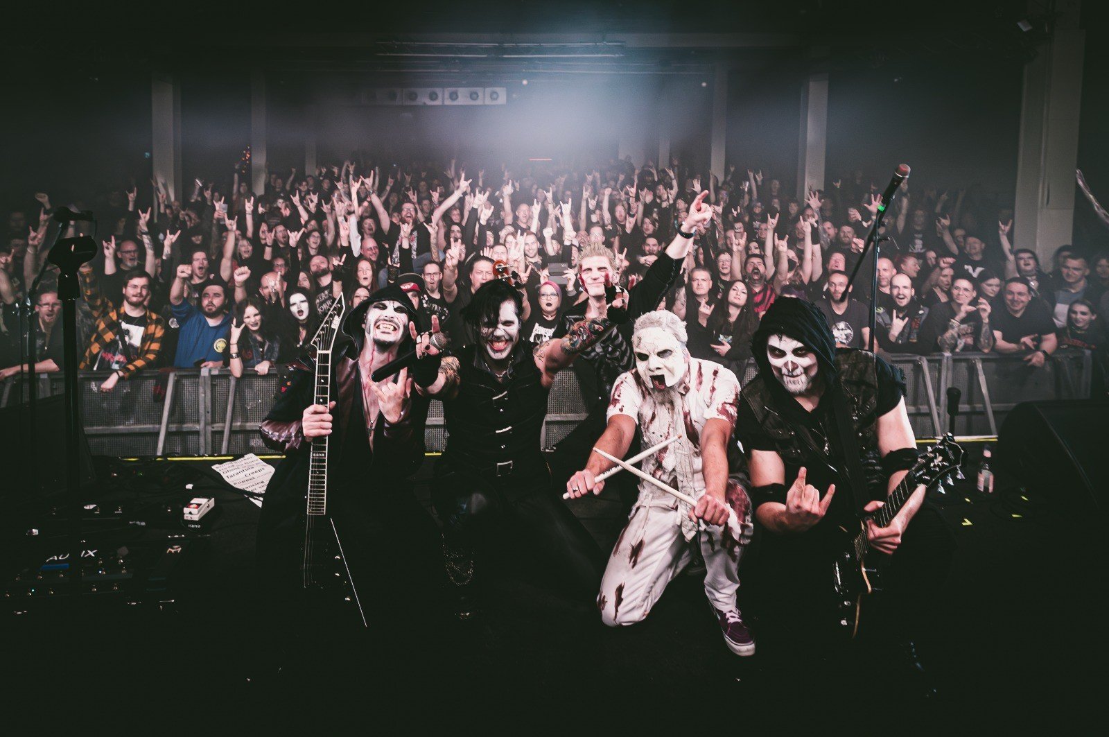 Ya desde “Hellfire” que la cosa pinta especialmente bien. Suena a especie de mezcla entre los Misfits de Michale Graves y los The Damned, pero hay mucho más: una guitarra con reminiscencias a Social Distorion y un vocalista como es Rod Usher de voz profunda, pero siendo versátil y melódico. Incluso añaden el doble bombo de Dr. Caligari en un gran final de un tema especialmente motivante y pegadizo. “I Give You the Creeps” empieza a toda velocidad, y de repente, hay un parón sorpresivo e hímnico que la hace carne de directo con los habituales “uooo, uooo” para jugar con el público. Inmejorable inicio y gran demostración de posibilidades.