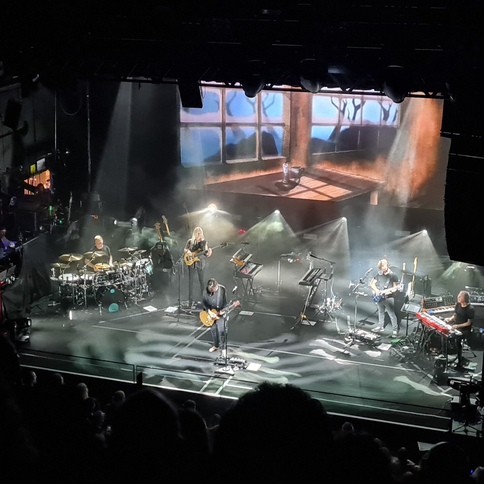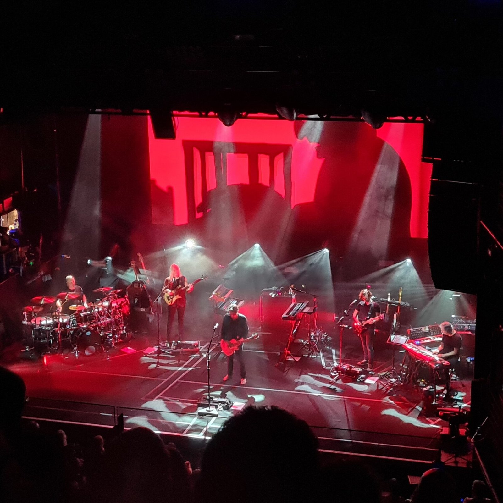 Wilson pidió en la pantalla, y antes del bolo, que, por favor, nadie grabase y que la amenaza de sacar móviles a quienes lo hicieran, era real. Y lo fue… porque un segurata especialmente motivado cumplió las órdenes a rajatabla. Contrastaron esos momentos con la paz que da su nueva obra en una extensa “Objects Outlive Us” que nos cautivaba nada más empezar. El inicio con ese grito ya presagiaba momentos de sublimidad, con el bajo de Nick Beggs al 11, con coros reales y con un quinteto serio y tremendamente concentrado. La parte que fue single y que se acerca a Bowie fue inmensa, luego pasajes Pink floydianos trufados de imágenes tremendamente cuidadas.