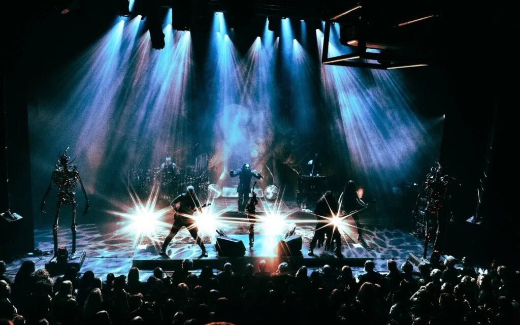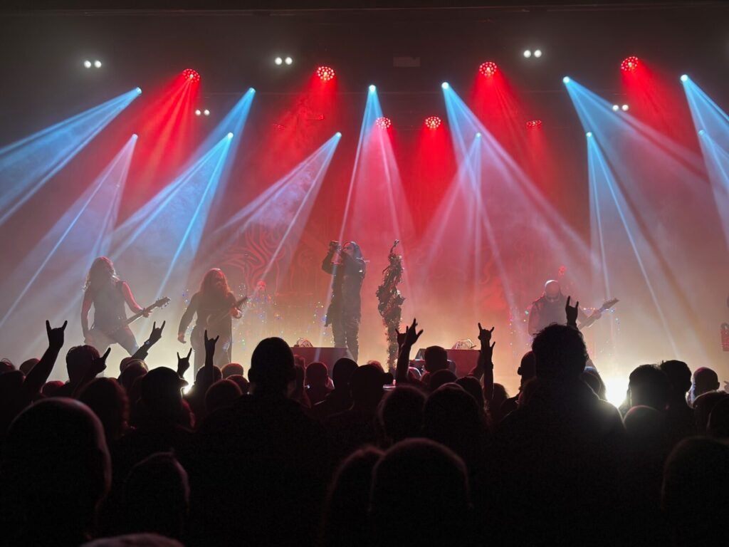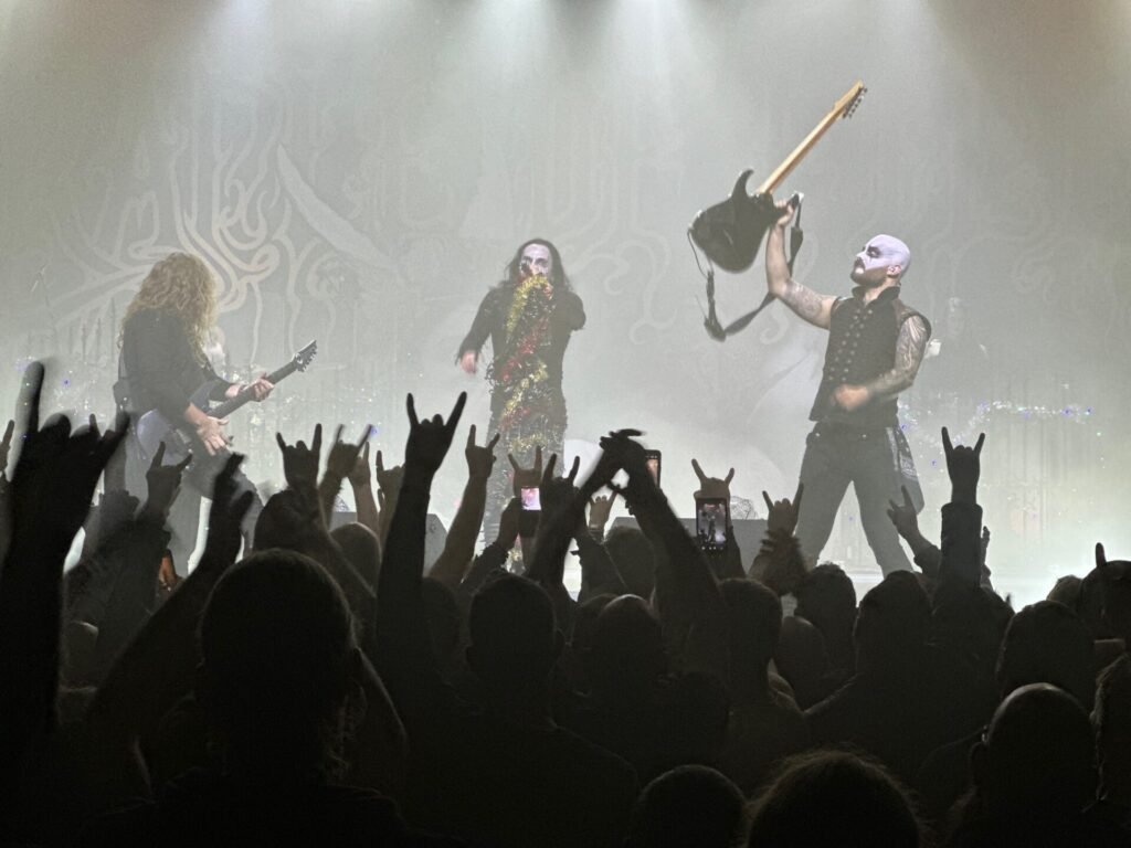 Todo listo y al apagarse las luces empieza a sonar el canto eclesiástico que sirve de intro a “To Live Deliciously”, tema que inicia su último album y el concierto. La ejecución es sobresaliente, apoyada en un sonido impoluto que hace temblar el suelo de la sala sin apenas distorsión. Dani Filth hace acto de presencia y despliega su performance habitual, con sus alaridos característicos y moviéndose al ritmo de los riffs. Jirí Háb, el sustituto de Smerda, capturó inmediatamente mi atención; en su rol de sustituto hace un trabajo más que aceptable como guitarra solista, logrando un engranaje adecuado con el resto de la banda. Kelsey Peter, la encargada de las voces y el teclado en sustitución de Zoe Federoff suena algo más tímida, con voz trémula en algunas ocasiones.