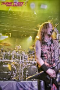 Los canadienses tienen las cosas claras. No son una banda que necesite grandes montajes, ya que sus directos se centran en la descomunal potencia y en la pegada que despliegan al atacar unos temas que, además de conectar con el público, consiguen mantenerlo en constante movimiento. Su puesta en escena fue de lo más sobria, contando únicamente con un modesto juego de luces y cuatro columnas de humo que aparecieron durante prácticamente todos los temas que interpretaron. Arrancaron su show de forma rotunda e incontestable con “Push The Venom”, dejando claro que no nos iban a dar ni un segundo de tregua. Y es que los ritmos más densos, opresivos y pantanosos no tardarían en hacer acto de presencia durante los desarrollos contenidos en “Thy Serpents Tongue”.